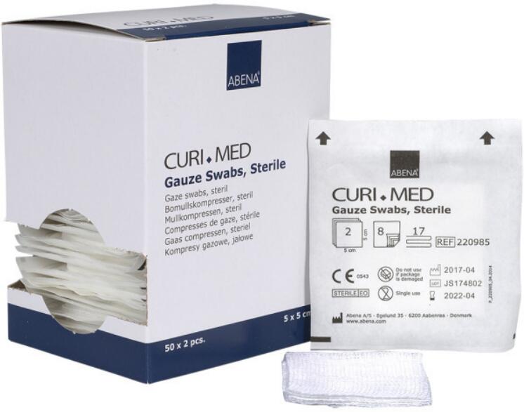 Leírás 2 db Curi-Med gézborogatás az Abenától. Méretek:5x5 cm10x10cm8 réteg100% pamutBőr törlésére, vér és váladék felszívására steril eljárások során.