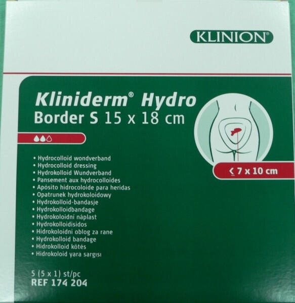 Kliniderm Hydro Border hydrocolloid kötszer vastagságától függően enyhén, közepesen, vagy erősen váladékozó krónikus és akut sebek kezelésére alkalmazható. Például égési sebek, horzsolások, donorhelyek, felfekvések és lábszárfekély. A Kliniderm Hydro szivacsos felépítésű, polimer mátrix, melyet egy szemipermeábilis fólia réteg fed. A kolloid alkotóelemei gélé