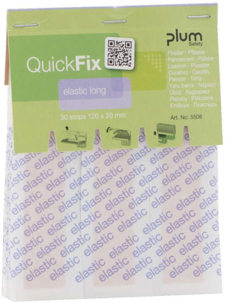 30 db extra hosszú ragtapasz, amelyek többször is az ujj köré tekerhetők, amelyek alkalmazkodnak a bőr mozgásához. A ragtapaszok bőrbarát és légáteresztő anyagból készülnek. Utántöltő a Plum QuickFix ragtapasz adagolókhoz.