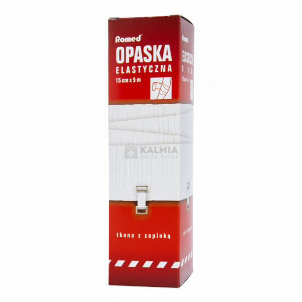 15 cm széles rugalmas pólya 2 db kötszerkapoccsal.