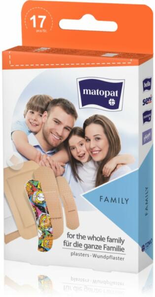 MATOPAT Family, 17 db, Gyermeksebtapasz unisex, Ne engedje, hogy a horzsolások vagy az apró sérülések beszennyeződjenek. A sebtapasz MATOPAT Family megbízható és higiénikus megoldás a sérült bőr ápolására. Felhelyezve jól tapad, miközben engedi lélegezni a bőrt. Tulajdonságok: a légáteresztő anyagnak hála a bőr képes lélegezni különböző méretek a csomagolásban