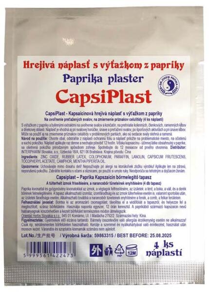 Capsiplast – Paprika Kapszaicin bőrmelegítő tapasz a túlterhelt izmok frissítésére, a narancsbőr tüneteinek enyhítésére.