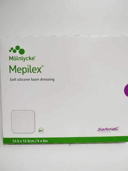 Mepilex 12,5x12,5 cm lágy szilikonnal bevont habszivacs kötszer Indikáció: Vénás és artériás eredetű fekély, sipoly, decubitus, neuropathiás fekély, epidermolysis bullosa, krónikus nyiroködéma, vasculitis, coagulopathia, traumás sebek, termikus károsodás, tracheostoma, Kock-rezervoár, bőrtranszplantáció. A Mepilex egy rugalmas, nedvszívó poliuretán habrétegből áll, ame