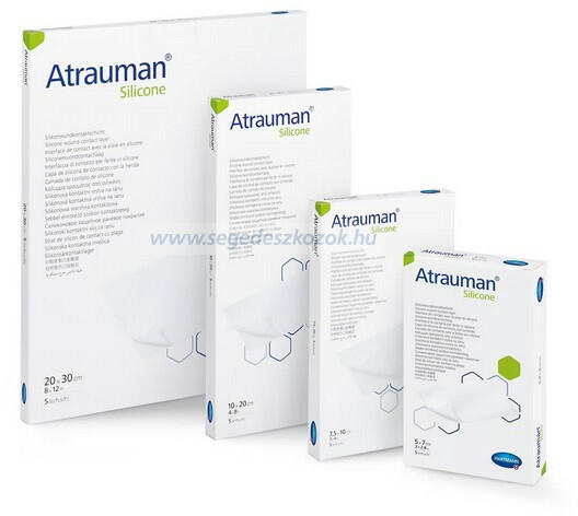 Termék részletekAz Atrauman® Silicone hálós kötszer hordozóanyaga polietilén-tereftalát (PET) háló, melynek mindkét oldalán (polidimetil-sziloxán alapú) szilikon gél bevonat található. Ez a kontaktréteg kötszer segíti a traumamentes sebkezelést, vékony, puha, jól alakítható és vágható. Nyitott hálós szerkezetének köszönhetően átengedi a sebváladékot. Gyengéden, de biztosan tap