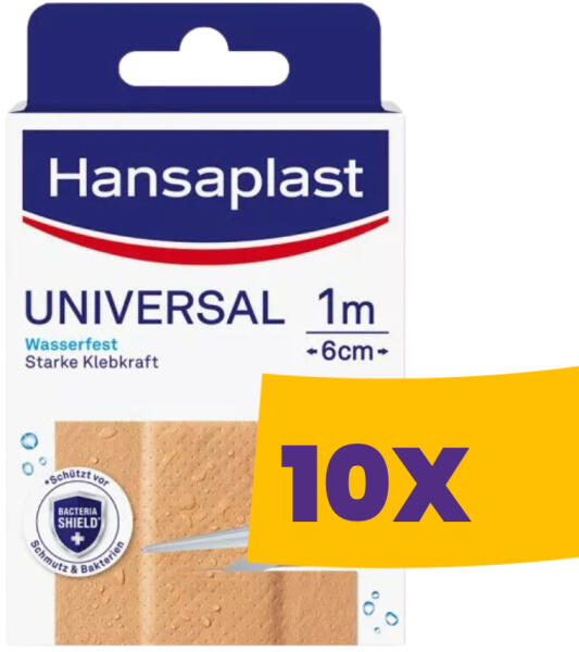 A Hansaplast Universal műanyag sebtapaszok a kisebb sebek minden típusának lefedésére alkalmasak. Az anyaga légáteresztő és vízlepergető. A nem ragadó sebpárna védi és körülpárnázza a sebet. Az erős tapadás biztosítja, hogy a sebtapasz a helyén maradjon.