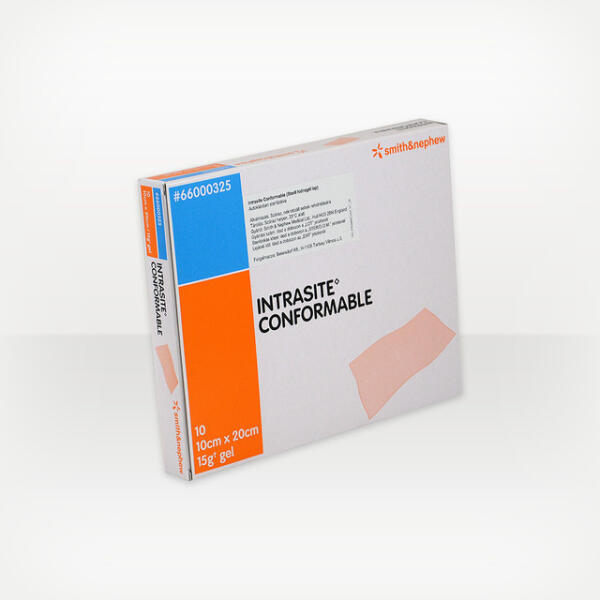 Hidrogél sebkötszer Az Intrasite Conformable nem – szőtt anyagból készült kötszer , áttetsző amorf hidrogéllel átitatva A hidrogél módosított carboxi-metil-cellulóz polimer, propilén glikolt és vizet tartalmaz. Hatásmechanizmus : A kötszer elősegíti a természetes autolítzises sebtisztulást, finoman rehidrálja a nekrotikus szövetet. Emellett fellazítja és felszívja le