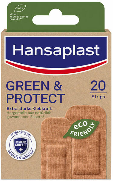 A GREEN & PROTECT jelenti az első lépésünket a fenntartható sebápolás felé. Ez az innovatív sebtapasz környezetbarát anyagokból készül, ugyanakkor a megbízható Hansaplast minőséget nyújtja. A sebpárna és a tapasz külső rétege természetes eredetű rosto