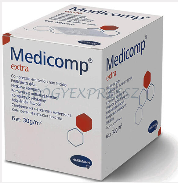 A közölt ár 1 db-ra vonatkozik. Rendelési mennyiség 50 db vagy annak többszöröse (mivel 1 dobozban 50 db fedőlap található). Flíszből készült 6 rétegű nem szőtt sebfedő. Kettesével csomagolva. A Medicomp sebfedők nagy nedvszívó képességű nem szőtt anyagból készülnek, kötőanyagokat és fehérítőszert nem tartalmaznak. Lágy anyaga jól alakítható, a bőrt nem irr