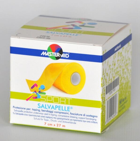 Egyesével csomagolt Underwrap. A Master-Aid Sport Salvapelle (bőrvédő szalag) speciális felhasználásra ajánlott. Főként tartó kötések alkalmazásakor a bőrfelület védelmére szolgáló könnyű és vékony 100% poliuretán hab szalag. Könnyen téphető, a szerkezete porózus, így lehetővé teszi a bőr lélegzését, mellyel elkerülhető a kötések alatti izzadás vagy irritá