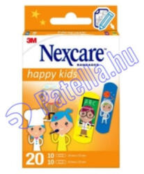 Gyermekek számára, általános felhasználásra. Hipoallergén, légáteresztő. Puha sebtapasz különösen érzékeny bőrre Egészségre káros anyagot nem tartalmaz Nexcare kids sebtapasz happy kids, 20db vegyesen