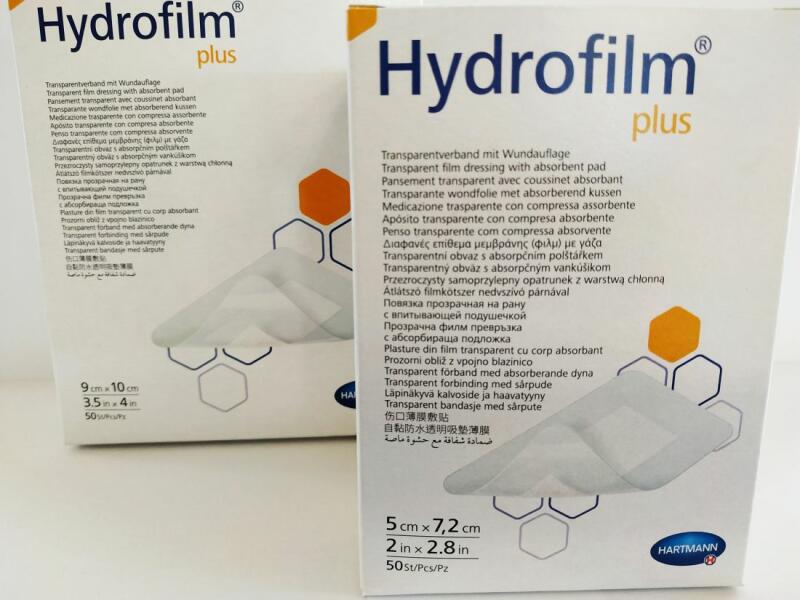 Átlátszó filmkötszer sebpárnával A vízálló Hydrofilm® Plus filmkötszer átlátszó, jól tapad a sebkörnyéki bőrre, és különösen jó bőrbarát tulajdonságokkal rendelkezik. Jellemzők Öntapadó, átlátszó filmkötszer nedvszívó sebpárnával, amely nem ragad a sebbe. Baktérium-és vízálló, félig áteresztő, poliuretán fóliából készül, így a sebkörnyezet és a