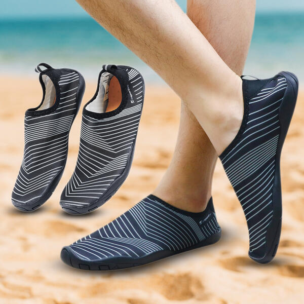 Az inSPORTline Makar cipő alkalmas nemcsak vízbe, de szárazföldre is. Lehetővé teszi a kényelmes és biztonságos sétát mind homokon, mind kövön, kavicson vagy akár sziklás parton is. A légáteresztő felsőrész biztosítja a levegő keringését, a talpon lévő lyukak lehetővé teszik a víz elvezetését, így a cipő és maga a láb is gyorsabban szárad. Az elasztikus anyagnak