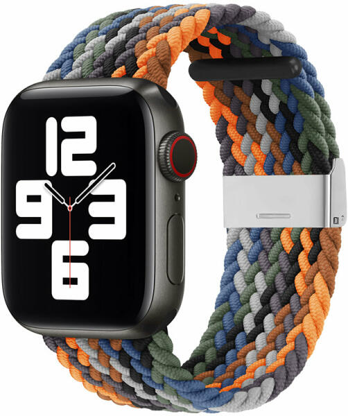 Apple Watch Series 2/3/4/5/6/7/8/9/10/Ultra/SE (44/45/46/49mm) okosóra szíj - Color 6, fonott szövet szíj (strech). Színes karkötő amely magával ragadja a tekintetet - és jó okkal: fonatból készült. Egyszerű a felhelyezése, ami azt jelenti, hogy mostantól tetszés szerint váltogathatja készülékén. A masszív, kényelmes szíj alkalmas nőknek és férfiaknak egyaránt, tökél