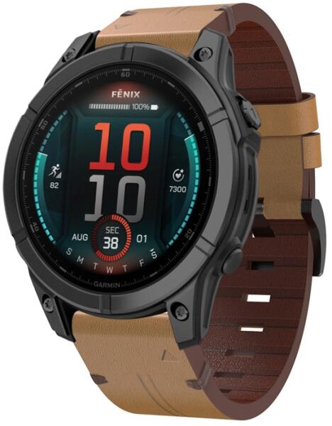 Fedezze fel a tökéletes módot, hogy életre keltse Garmin Fenix® 8 43mm-es készülékét cserélhető hevedereinkkel. A prémium minőségű műbőrből készült erős szíj elegáns és kellemes tapintású. Változtasd meg gyorsan és egyszerűen okosórád megjelenését egy olyan szíjjal, amely gyönyörködtet a megjelenésével, és meglep a kiváló minőségével. tervezve: a Garmin