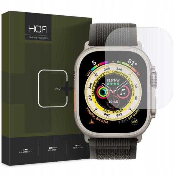 Apple Watch Ultra 1 / 2 49 mm okosóra üvególia -HOFI Glass Pro+ üvegfólia. Ez az átlátszó edzett üveg tökéletesen tükrözi a megjelenített színeket, így élmény lesz használni. Felületi keménysége 9H, ami azt jelenti, hogy nagyon ellenálló és védi a karcolásoktól. Emellett egy speciális nanoréteg is borítja, ami megakadályozza az ujjlenyomatok és más szennyeződése
