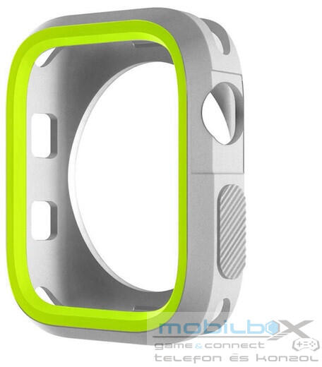 Phoner Twin Apple Watch szilikon tok, 45mm, ezüst/zöld