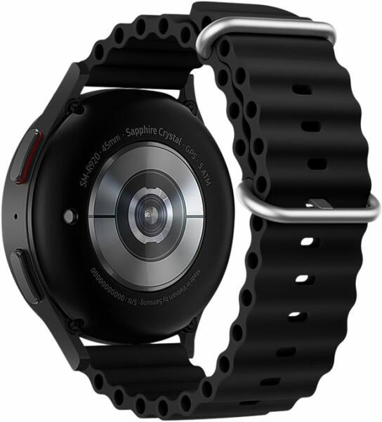 Forcell F-Design szilikon pánt Samsung Galaxy Watch (20 mm) - fekete A Forcell F-Design szíjat a 20 mm-es Samsung órához készítették. A pánt kiváló minőségű környezetbarát szilikonból készült, strapabíró és rugalmas, és egész napos viselési kényelmet biztosít. Ez egy bőrbarát és környezetbarát szilikon, amely ellenáll a külső tényezőknek, például a víznek és