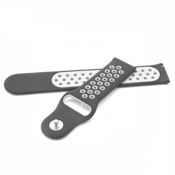 Kiváló minőségű óraszíj Motorola Moto 360 for Men (2nd Gen 46mm) készülékhez, új állapotú, utángyártott. Szíj Tulajdonságai: Szín: Fekete / Fehér Anyaga: szilikon Hosszúság: 13.3cm + 9.7cm Szélesség: 22mm