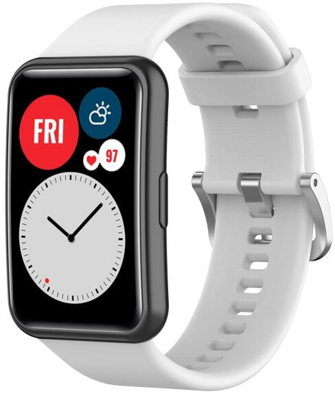 Huawei Watch Fit szíj fehér A Huawei Watch Fit szíj könnyen illeszkedik a csuklójához. Kiváló minőségű szilikonból készült, és tökéletesen illeszkedik az órájához. A pánt kellemes tapintású és mindennapi viseletre is alkalmas. A szíj alkalmazása nem igényes, így könnyedén változtathatod órád kinézetét, csak válassz a széles színválasztékból. kiváló minős