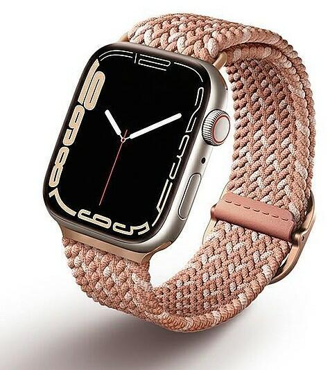 Uniq Aspen fonott pánt Puha, légáteresztő kényelem nyújtható Weavex anyagból. Mindegyik fejpánt kiváló minőségű poliészter szálakból készült, és ellenáll a kopásnak, izzadságnak és a fröccsenésnek. Csúsztassa el a rozsdamentes acél csatot, és állítsa be a szíjat igényeinek megfelelően, viselje kényelmesen és kényelmesen. Kompatibilitás: Apple Watch 40/38/41mm