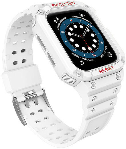 Védőszíj - Szíj tokkal Apple Watch 7 / 6 / 5 / 4 / 3 / 2 / SE (45 x 44 x 42 mm), tok - páncélozott óratok Erős, rugalmas és szinte páncélozott tok az Apple Watchhoz. Ez egy tok és egy szíj egyben, amelyet a fizikai aktivitás szerelmesei különösen értékelni fognak. A Protect Strap Band hatékonyan megvédi okosóráját a sportolás közbeni sérülésektől – még az extrém s