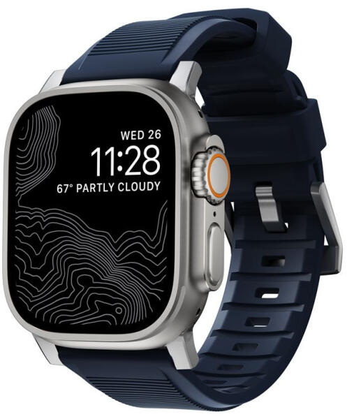 Nomad Rugged Apple Watch szíj 42/ 44/ 45/ 49 mm Úgy tervezték, hogy modern, masszív megjelenést kölcsönözzön Apple Watch órádnak a mindennapi viselethez vagy a következő kalandodhoz. A Rugged Band FKM-ből készült, egy puha, mégis erős fluoroelasztomerből, amely az egész napos kényelmet tartós tartóssággal ötvözi. Az egyedi tervezésű, fröccsöntött rozsdamentes acélb