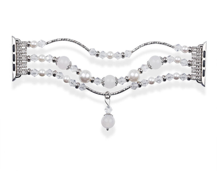 Okosóra szíj divatos kivitelben, csillogó kristályokkal és gyöngyökkel díszítve. Bőrbarát rozsdamentes acélból készült, kényelem használat közben. Az állítható pánt segít a csuklójához igazítani a hosszát. Gyors és egyszerű szíjcsere. Hossza: 13-23 cmSzíj szélessége: 22mmAnyaga: rozsdamentes acél