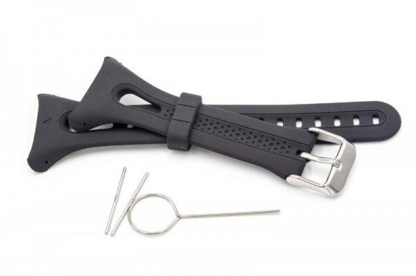 Kiváló minőségű óraszíj Garmin Forerunner 10, 15 készülékekhez, új állapotú, utángyártott. Szíj Tulajdonságai: Szín: Fekete Anyaga: szilikon Hosszúság: 11.5cm + 8.7cm Szélesség: 26mm