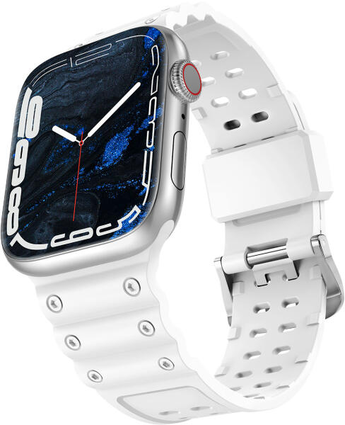 Triple Protection szilikon szíj Apple Watch 8 / 7 / 6 / 5 / 4 / 3 / 2 / SE (41/40/38 mm) - fehér Ez az Apple Watch szíj az eleganciát és a funkcionalitást egyetlen szemet gyönyörködtető dizájnban ötvözi. Az Apple Watch kiváló minőségű Triple Protection szíjai precízen és prémium anyagok felhasználásával készültek, hogy tökéletesen illeszkedjenek stílusához, miközben