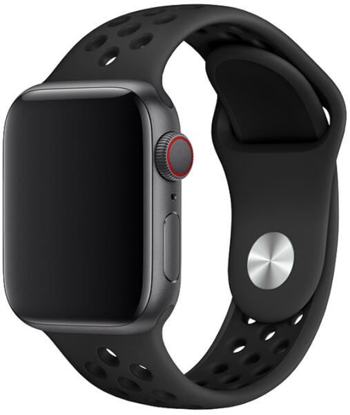 iKi Apple Watch 46mm / 45mm / 44mm / Ultra 49mm lélegző Sport szilikon szíj - fekete/fekete Apple Watch lélegző Sport szíj sportoláshoz. A szíjon kialakított lyukak csökkentik a súlyát, és javítja a csuklód szellőzését. Dobd fel meglévő Apple Watch készüléked egy sportos és strapabíró kiegészítővel. Anyaga: szilikon, fém csattal Ideális úszáshoz, strandoláshoz Bá