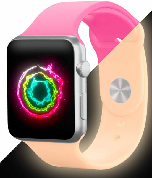 Minden Apple Watch szériához megfelelő. A szíj világít a sötétben. A világító hatás erősebb lesz miután napfény/lámpafény éri a szíjat. . Két szíj méret létezik, egy a kisebb órákhoz (38mm, 40mm, 41mm, 42mm(Series 10) és egy nagyobb a (42mm(Series1-3), 44mm, 45mm, 46mm és 49mm) órákhoz. Az órád méretét az óraház aljáról tudod leolvasni. . Szilikon anyaga tartó