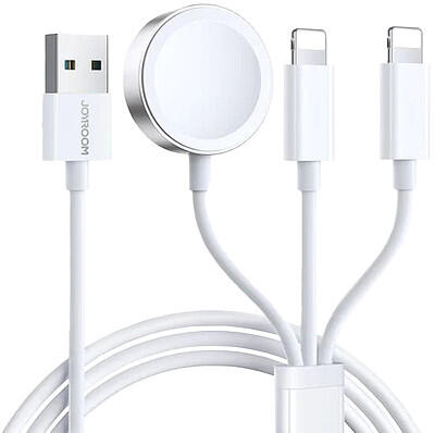 JoyRoom - Vezeték nélküli töltőkábel 3 az 1-ben (S-IW007) - USB az Apple Watchhoz, 2x Lightning, 3,5 W, 1,2 m - Fehér