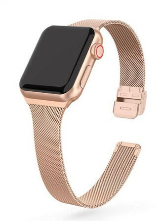 Mybandz APPLE WATCH CSATOS MILÁNÓI FÉM ÓRASZÍJ /ROSEGOLD/ 38/40/41 mm APW381572 Új, keskeny milánói fém szíj fokozatmentesen állítható kapcsos csattal, ami még stabilabban tartja a beállított méretet mint a mágneses verzió. Olasz dizájn, könnyed és elegáns is egyben. Anyaga: fém Kompatibilis: 38mm-es Apple Watch 1. , 2. , 3. 40mm-es , 4,5, 6 széria, 41mm 7. széria