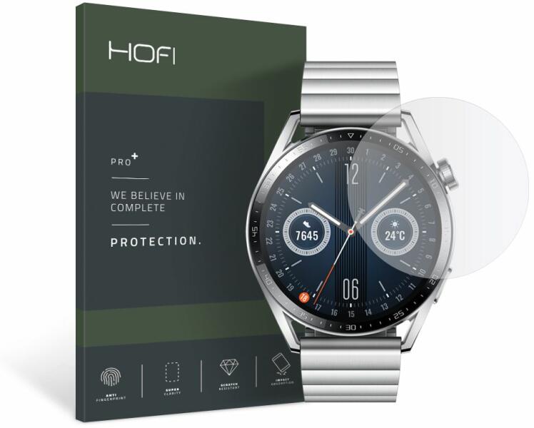 Huawei Watch GT 3 (46 mm) okosóra üvegfólia - HOFI GLASS PRO+. Átlátszó edzett üveg, amely tökéletesen tükrözi a megjelenített színeket. Felületi keménysége (ellenállási szintje) 7H.