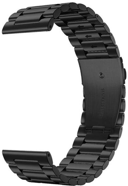 Colmi rozsdamentes acél okosóra szíj fekete 22mm. A rozsdamentes acél szíj az elegáns dizájn és a funkcionalitás esszenciája. Tartósságot és szép matt felületet biztosít. A masszív, lapos láncszemek modern megjelenést és kényelmes, egész napos viseletet nyújtanak. A pattintós mechanizmus használata könnyű és gyors fel- és levételt garantál, míg a 22mm szélesség sz