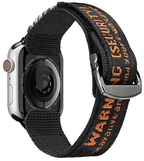 Az Apple Watch 7 (41 mm) / 6 / SE / 5 / 4 (40 mm) / 3 / 2 / 1 (38 mm) órájához tervezett csereszíj felfrissíti órája megjelenését. A szíj erős nejlonból készült, egyszerű kialakítású, mindennapi viseletre alkalmas. A felhasznált anyagnak köszönhetően a csukló nem izzad és gyorsan kiszárad, ha nedves lesz. A textilpánt az ötsoros tépőzárnak köszönhetően a csuklójá
