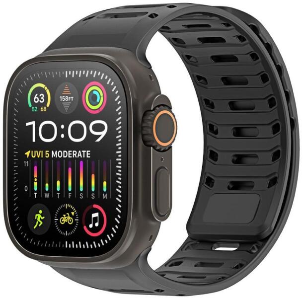 Minden Apple Watch szériához megfelelő. Két szíj méret létezik, egy a kisebb órákhoz (38mm, 40mm, 41mm, 42mm(Series 10) és egy nagyobb a (42mm(Series1-3), 44mm, 45mm, 46mm és 49mm) órákhoz. Az órád méretét az óraház aljáról tudod leolvasni. . Kényelmes viselet. Nem irritálja a bőröd. Könnyű bekapcsolni és állítani. . Biztosan tartja az órádat. Márka: Smartwatcherz