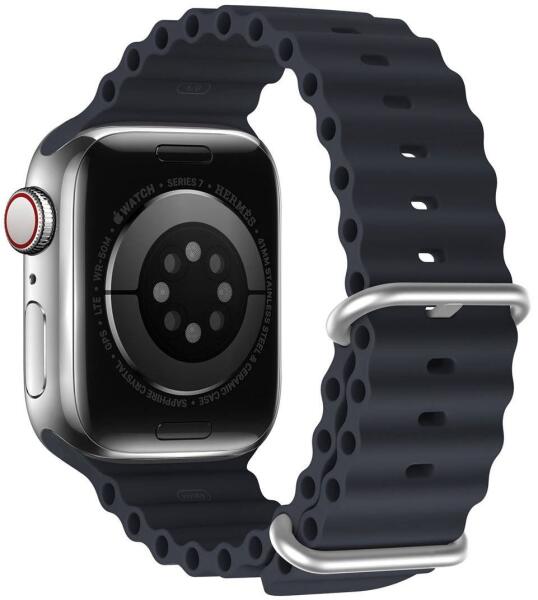 A Dux Ducis Ocean Wave szilikonszíj praktikus és kényelmes kiegészítő Apple Watch számára. Az öv hengeres keresztmetszetű, amely lehetővé teszi a szíj kényelmes beállítását még átázott ruházat esetén is. A rozsdamentes acél csat ellenáll a rozsdának, még akkor is, ha gyakran használja a szíjat víz alatt. A szíj puha, kényelmes és tökéletes mindennapi és sporttev