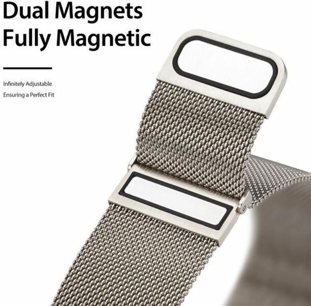 A Dux Ducis Milanese rozsdamentes acél mágneses szíj kényelmes és stílusos kiegészítője az okosórádnak. Bőrbarát, nem fáj még egész napos viselet során sem. Könnyű felhelyezni - csak csatlakoztasd a tokhoz, rögzítsd a csuklódra, és már kész is! Az elegáns, egyszerű kialakításnak köszönhetően az öv egyaránt illik a sportos és az üzleti stílushoz. A Dux Ducis mil