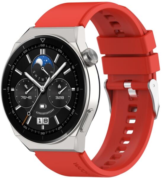 A Huawei Watch GT 3 Pro 46 mm-es szilikon szíj nagyszerű választás, ha új külsőt szeretnél órádnak. Könnyedén állítható a pánt mérete, és mivel szilikonból készült, tökéletesen illeszkedik a csuklójához. Kialakításának köszönhetően a pánt könnyű, kellemes tapintású és mindennapi viseletre is alkalmas. A szíj többféle színben készül, így mindenki válogat