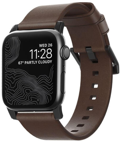 Nomad bőrszíj , Apple Watch 42 /44 / 45 / 49 mm - barna/fekete csatal Úgy tervezték, hogy klasszikus, mégis merész új megjelenést kölcsönözzön az Apple Watch-nak. Minimálisan kezelt, növényi cserzésű bőrből készült, Amerika egyik legrégebbi cserzőüzeméből. A bőrt úgy tervezték, hogy az idő múlásával szépen patinásodjon, így egy jóképű, gazdag bőrszíj jön l