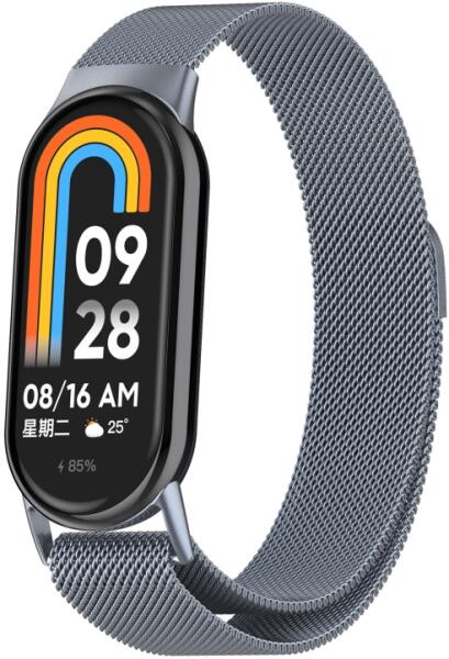 A rozsdamentes acélból készült elegáns fémszíj kifinomult és fényűző megjelenést kölcsönöz a Xiaomi Smart Band 9 órájának. Az állítható zárnak köszönhetően a szíj minden csuklóhoz alkalmazkodik. A MILANESE szíjjal stílusos divatkiegészítővé varázsolhatja okosóráját. a Xiaomi Smart Band 9 készülékhez tervezveegyszerű elegáns designállítható rögzítésro