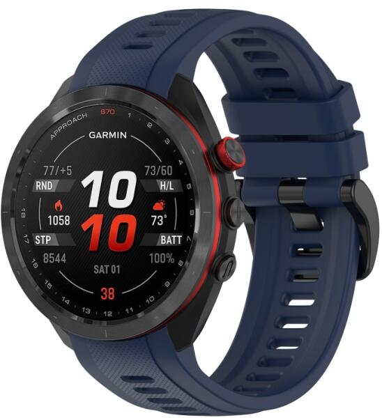 SZILIKON szíj Garmin Approach S70-hez – 47 mm-es, könnyen illeszkedik a csuklójához. A cserélhető szíj kiváló minőségű anyagból készült, és tökéletesen illeszkedik órájához. A pánt kellemes tapintású és mindennapi viseletre is alkalmas. A szíj felhelyezése egyszerű, és könnyedén megváltoztathatod órád kinézetét, csak válassz a színek széles választékábó