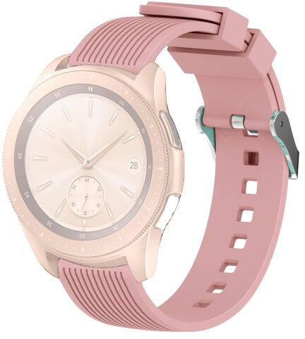 Samsung Galaxy Watch 42 mm-es rózsaszín szíj A Samsung Galaxy Watch 42 mm-es szíja könnyen illeszkedik a csuklójához. Minőségi anyagból készült és tökéletesen illeszkedik órájához. A pánt kellemes tapintású és mindennapi viseletre is alkalmas. A szíj alkalmazása nem igényes, így könnyedén változtathatsz órád kinézetén, csak válassz a széles színválaszték köz