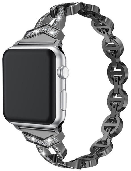 Okosóra szíj divatos színekbenCsillogó kristályokkal díszítveBőrbarát rozsdamentes acélból készültKényelem használat közbenAz állítható pánt segít a csuklójához igazítani a hosszátGyors és egyszerű szíjcsereÖv hossza: 17,5 cmSzíj szélessége: 15mmAnyaga: rozsdamentes acél