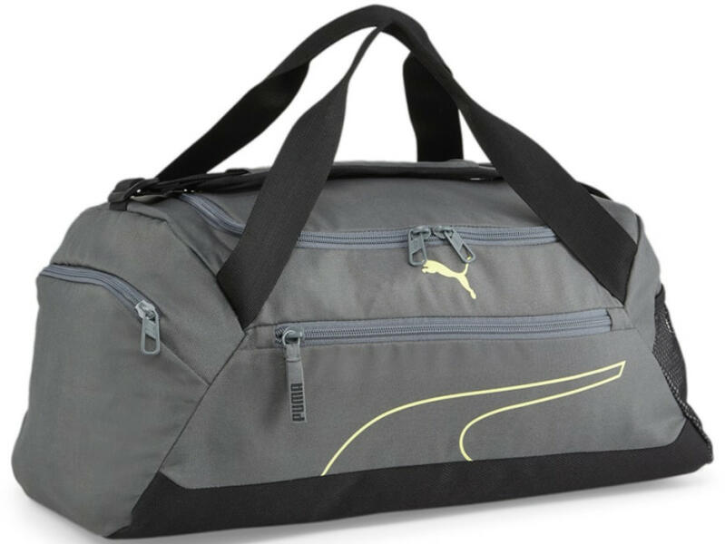 Puma Fundamentals S kicsi sporttáska. Kétirányú cipzárral nyitható tágas fő rekesz. Belseje egyterű. Elején cipzáras zseb. Egyik oldalán hálós, másikon cipzáras zseb. Tetején két fix kézbefogó fogantyú, tépőzáras markolattal. Hosszú vállpántja állítható kb. 60-120 cm. Kézben és vállon kényelmesen hordható. Külső méretek (Szélesség x Magasság x Mélység) 45