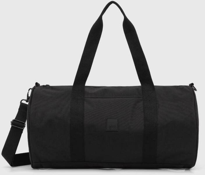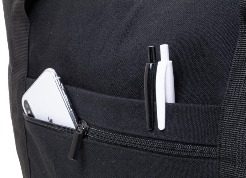 Újrahasznosított vászon utazó- és sporttáska cipzáras fő rekesszel, elülső zsebbel, állítható vállpánttal és cipzáras hátsó zsebbel, amely bőröndpántként is funkcionál. 70% újrahasznosított pamut és 30% RPET poliészter. Megkülönböztető újrahasznosított pamut címkével.