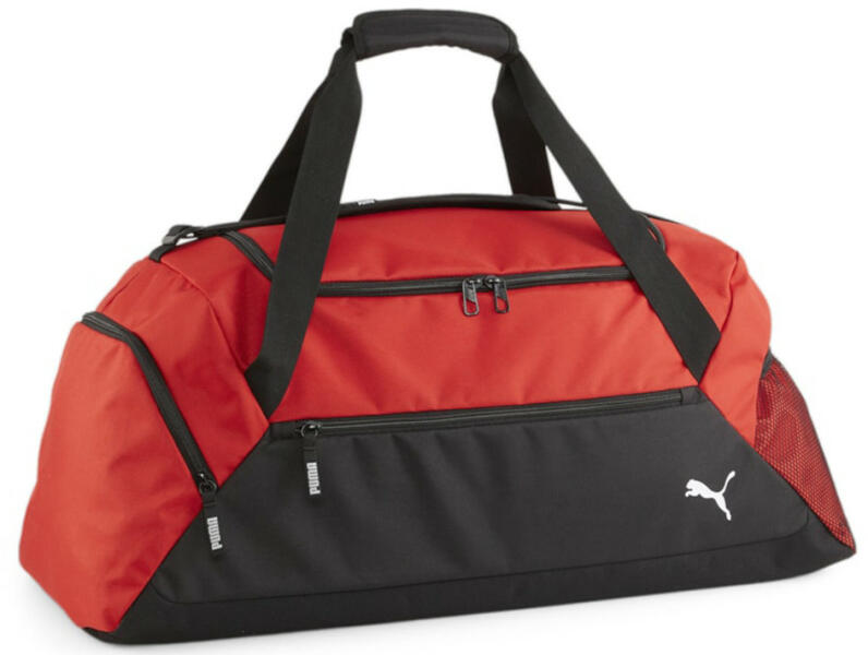 Puma teamGOAL M közepes sporttáska. Kétirányú cipzárral nyitható tágas fő rekesz. Belseje egyterű. Elején cipzáras zseb. Egyik oldalán cipzáras zseb, másikon hálós rekesz. Tetején két fix kézbefogó fogantyú, tépőzáras markolat. Hosszú vállpántja állítható kb. 60-120 cm. Kézben és vállon kényelmesen hordható. Külső méretek (Szélesség x Magasság x Mélység)