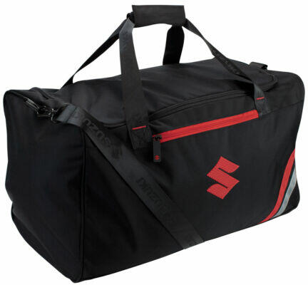 SUZUKI AJÁNDÉKTÁRGY, SUZUKI SPORTTÁSKA A GYÁR ÁLTAL FORGALMAZOTT TERMÉK. Egyedi kialakítású Suzuki sporttáska . Nagy méretű fekete sporttáska vállpánttal és fogantyúval. Színe : Fekete Anyaga : 10 0% poliészter bélés, 100% nylon külső réteg Méret: kb. 52 x 29 x 28 cm Cikkszám : 990F0-BKSB0 -000