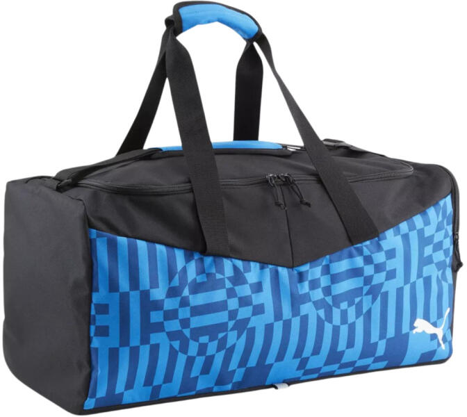 Puma individualRISE közepes sporttáska. Kétirányú cipzárral nyitható tágas fő rekesz. Belseje egyterű. Egyik oldalán cipzáras zseb. Tetején két fix kézbefogó fogantyú, tépőzáras markolat. Hosszú vállpántja állítható kb. 60-120 cm. Kézben és vállon kényelmesen hordható. Külső méretek (Szélesség x Magasság x Mélység) 55 cm x 26 cm x 25 cm.